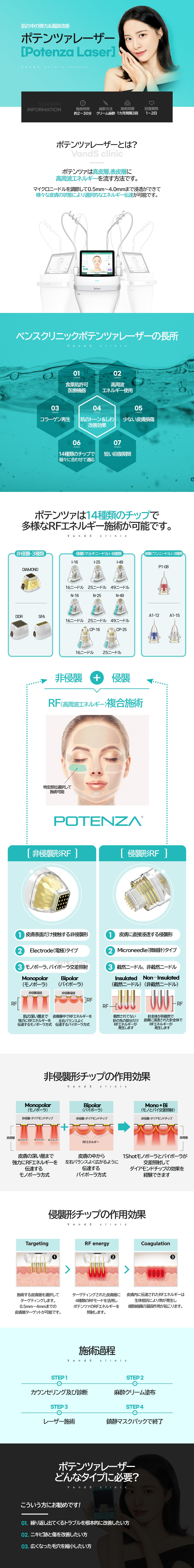 ポテンツァレーザーは皮膚の真皮層にマイクロニードルを挿入し、RF(高周波)エネルギーを